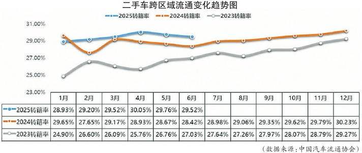 中国汽车流通协会产业协调工作委员会主任徐剑飞对《中国消费者报》记者表示,2024年,二手车市场跨区域流通趋势的加强尤为显著。今年6月,二手车转籍总量为48.92万辆,较去年同期增长超13%,表明消费者对二手车的选择正变得更加多元化、跨区域化,二手车市场的活跃度不断提升。